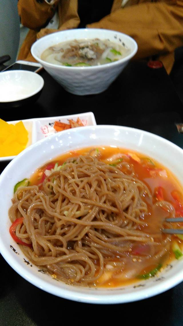 在明洞吃的晚餐,有热心会中文的小哥推荐了地方,吃了海鲜煎饼,送了不少小菜,这份煎饼12000,还点了一个6000的凉面