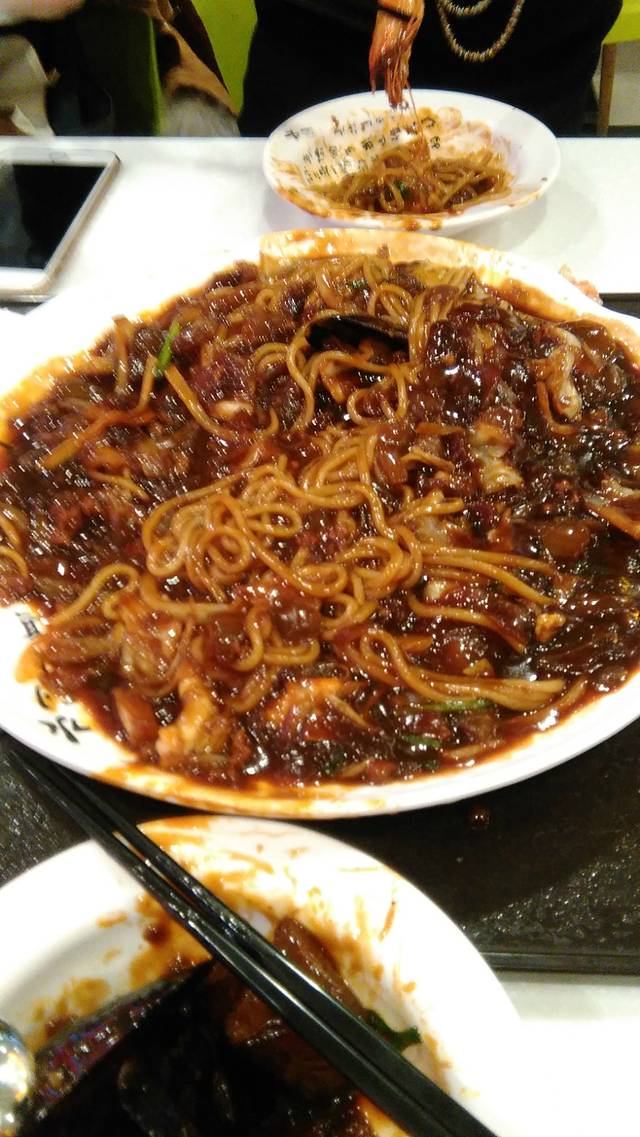 中午乐天园内吃的双人份炸酱面,面很好吃,但是酱料有ONION,看看,酱都剩下了。。。