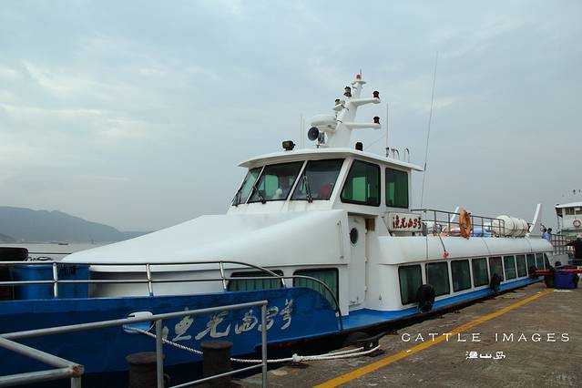 (去渔山岛有快慢船之分 快船往返320银子/人 1.5小时 慢船往返240银子/人 2.5小时 快船内部构造是左右各三座位 中间过道 备有呕吐袋 起风浪时 周边呕吐声此起彼伏 个人推荐坐快船 少受罪 开船时会路过一个海军港 不让拍照)