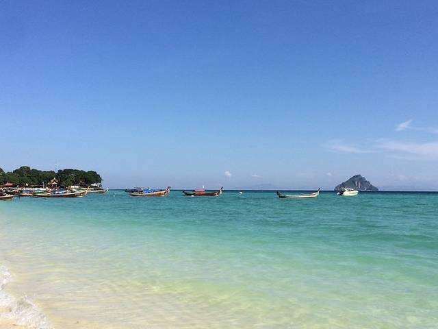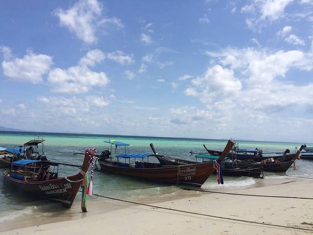 早上7:30,再一次挣扎着起床,因为预约了8点的长尾船前往蚊子岛和竹子岛浮潜。昨天晚饭前在另几个酒店沙滩闲逛,一路很多租长尾船的渔民,去咨询了一个船家,1200b三小时,1600b四小时,比我在网上看的略贵,于是悻悻而走。返回途中,之前咨询的那个船家的一个同伴把我和车哥叫住,告诉我们他那里有4个人预约了明早8点出海,我们如果一起拼船就刚好(一船6个人),4小时1800b,平摊下来我和车哥只需要给600b,好不划算,当然一口就定下来了(说明一下,竹子岛和玛雅海湾现在需要上岛费400b,包含两个岛,只去一个岛也要400b,我们和船老大所谈价格不包含上岛费)