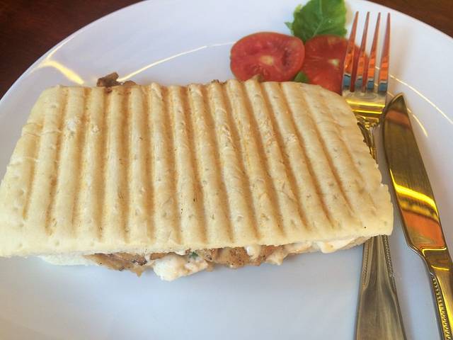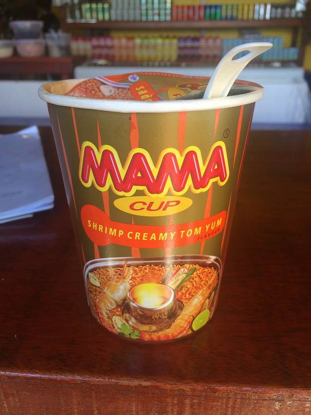 踱步来到jasmime餐厅,本想碰碰运气看她家卖不卖早饭,却意外得知旁边的小卖部可以吃到早饭(jasmine老板告诉我这个小卖部也是她的,上周刚开业)。我要了一桶冬阴功味道的mama方便面,40b,味道不错哦。车哥要了一个鸡肉三明治(250b),老板亲自烤的,味道真心巴适!遂抢了好几块鸡肉过来。早晨基本没什么人,我就坐在沙滩的吧台上用撇脚英文跟老板聊起天来,也是愉快的收获。