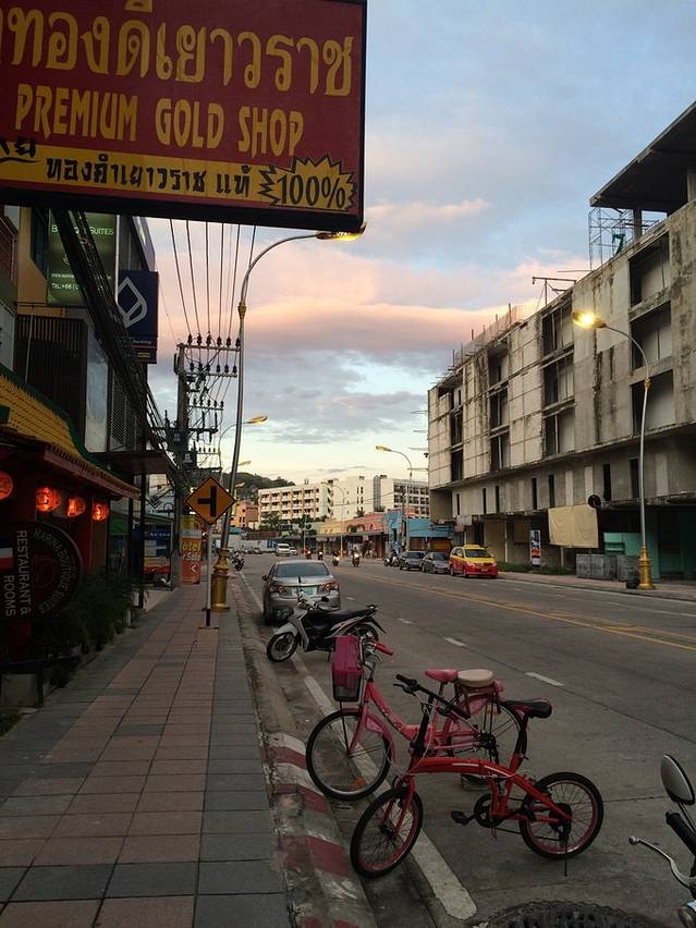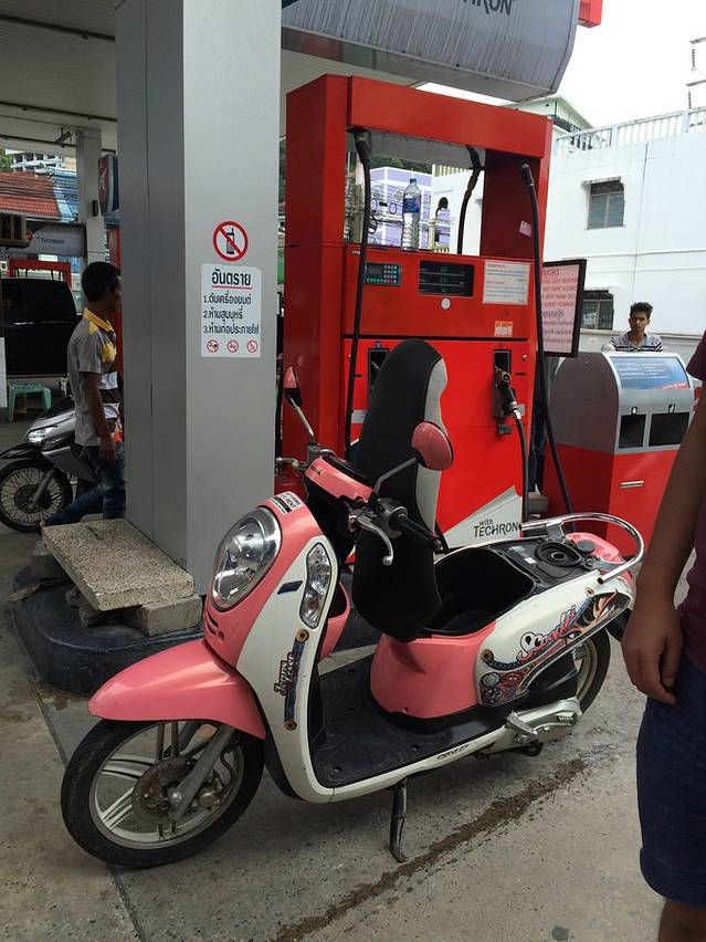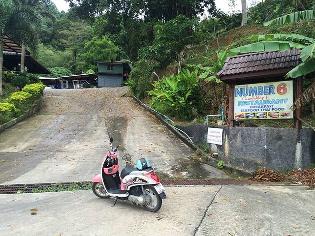 13:00回到登巴,按计划我们应该去租摩托开始我们的普吉岛摩托之旅!这时候占有最重要职责的司机车哥开始打退堂鼓,他的说法是他没怎么骑过摩托,不太安全,而且也没有摩托驾照,被交警逮了如何是好?当然这些我都已经考虑过了,并且做了万全的准备!况且,普吉岛交通非常贵,普通tutu车和taxi起价都在200b,只能跑巴东片区。如果要跨海岸,到相邻的卡塔、卡伦,得400b起价,我们可是计划要环小半个普吉岛呢,不租一个摩托实在不方便。在我威逼利诱下,车哥不情不愿被我拖到登巴对面的酒店以200b/24小时的价钱租了一辆小粉摩托。后来事实证明这是我们来普吉之后最正确的一个决定,给我们带来了自由快乐的普吉环岛行。车哥最后决定下次来普吉就要租一个大排量的摩托了