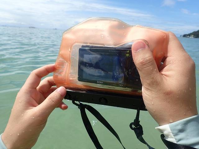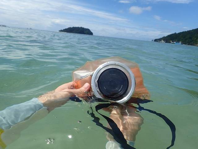 ③、想要一个相机行走天下,就需要买相机防水套了。比如此次行程我使用的sony nex-7,专业防水外壳需要1000+甚至更多的金额,都可以买一个防水相机了。于是在淘宝上买了此款360元的防水套,当然淘宝上几十块钱的便宜货非常多,但是你敢拿几十块钱来堵一万多的相机吗?我买的这款索尼专用型相机防水套,根据不同的微单相机和镜头量身定做,超高清玻璃镜片让照片非常清晰,近距离效果很好,可惜我不太会用单反,调出来的相机色度不是很对。先按照卖家提示和说明书在家里测试了防水性,确认不漏水之后一路带着,直到真正下海之前还是在担心进水。还好,在水里用到最后越来越得心应手,下次一定能拍出更美的鱼摆摆和珊瑚。不能贴地址,想买防水套的小伙伴可以直接淘宝搜索店铺“成都数码在线”,他家还有很多其它各种相机的防水套,质量倒是没话说。唯一遗憾是我的18-200镜头太长了装入防水袋后就不能再变焦,只能用18广角端拍照,如果是18-55或者16-50是可以变焦的,不过我还是偏爱一镜走天下的18-200头。