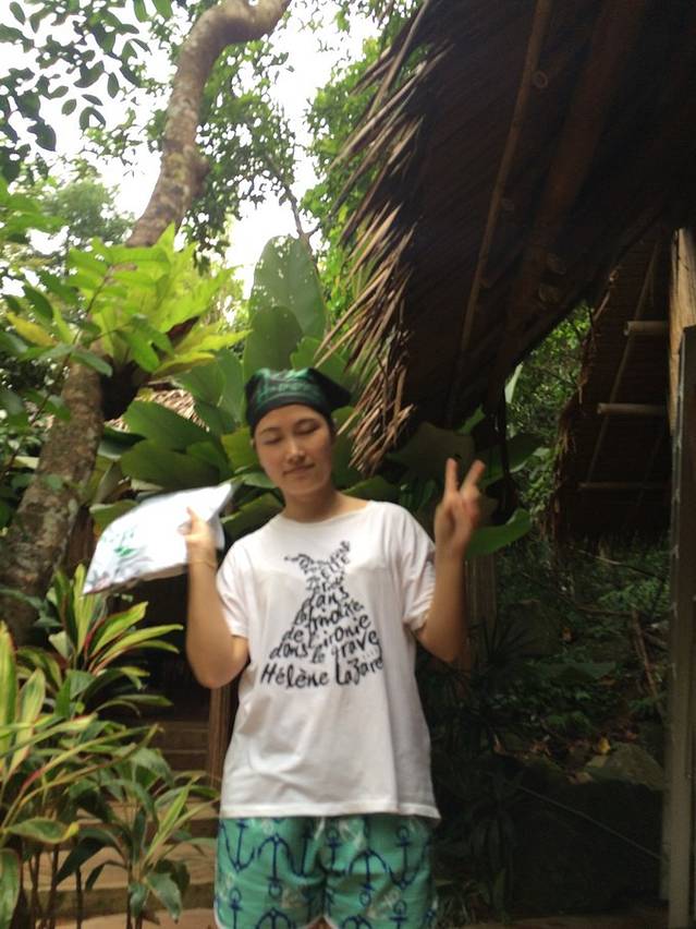 提前在淘宝预定了今天10点的丛林飞跃(Flying Hanuman)。司机9点20到酒店接人。绕着山路十八弯行进,10点准时到达目的地。穿安全装备,带头盔,两个热情的小黑(一个叫taxi,一个叫奔奔,名字都挺好笑)带着我们一行9人出发了(一对中国双胞胎姐妹和她们的老公、三个大概是俄罗斯人)其他几人不是用安全带装着相机,就是把行拍仪器戴在头上、手腕上,高级得不得了,而我和车哥两个low逼连手机都没带!此处无照片,爬山差不多20分钟,然后就开始在树上的绳索间飞来飞去。期间有两次从超高的大树顶端速降,和游乐场里的跳楼机差不多,只是一个是机器,一个原生态,不一样的体验。虽说小黑奔奔矮胖矮胖,到了树上轻巧灵活,飞来跳去,不断用撇脚的中文逗笑大家。到了最长的400m飞跃时,taxi还带我体验了一把flying,感觉就一个字,非常爽!所以,去玩丛林飞跃的朋友们,当他问你do you want to fly时,你一定要大声告诉他 “Yes”!整个行程大概2个半小时,出来后在大厅里休息。买了含餐的人就可以在这里吃自助午餐了,没买的服务员会端上果盘。最后我们团队都给了两个费心费力逗乐大家的小黑小费。