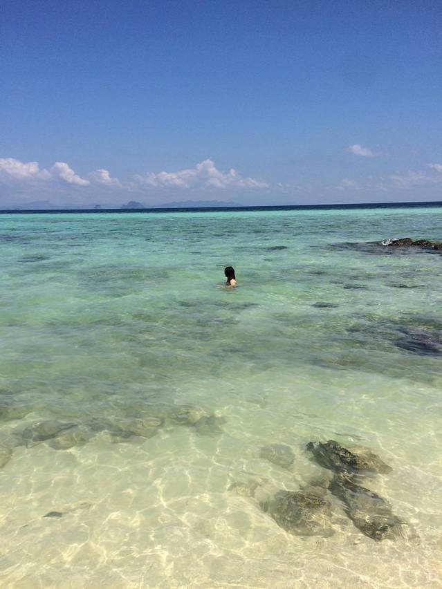 在蚊子岛呆了差不多大半个小时后,一路晕船晕海,来到竹子岛。船老大把我们带到了岛的背面,这才知道从背面登岛没人管,根本不需要登岛费啊!竹子岛(其实很多岛都是)近岸珊瑚较多,又不许穿鞋上岛,不管是浮潜还是游泳,最好穿上潜水袜,可以保护到膝盖以下。
