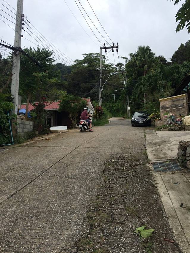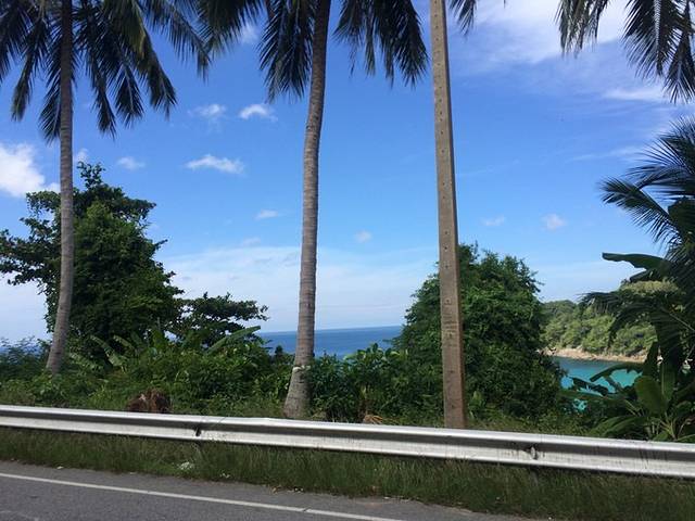 15:30,饭后为了让车哥熟练摩托,沿着巴东海岸一路,目的是去相邻的卡伦海滩熟悉路线,为明天的小范围环岛游打头阵。结果我这个因为做了攻略过于自信的水货没有打开导航,想着反正海边就一条路,经过另一个海岸未停,直到半个小时后在半山坡遇到一个小铺子下车买水,小店旁有一条下山延伸到海边的楼梯,楼梯口立有一块木牌写着” Laem Sing beach“。立刻翻看从机场免费拿的一直随身携带的普吉中文地图,原来我们误打误撞走的是与卡伦卡塔相反的方向,经过甘玛拉海滩到达了一个从未听人提及的拉加星海滩。