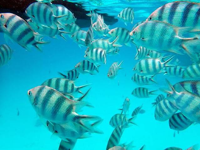 随着越来越接近蚊子岛,都是这样清澈见底的海水,看起来很浅,下去才发现至少3、4米深