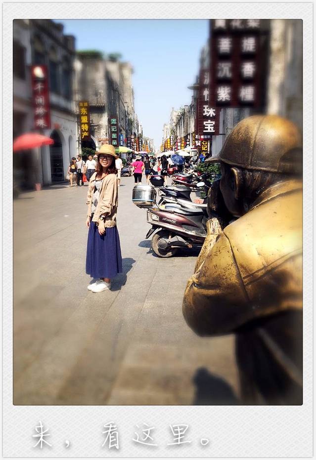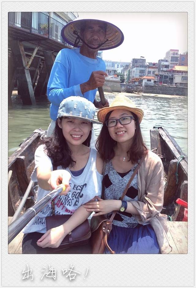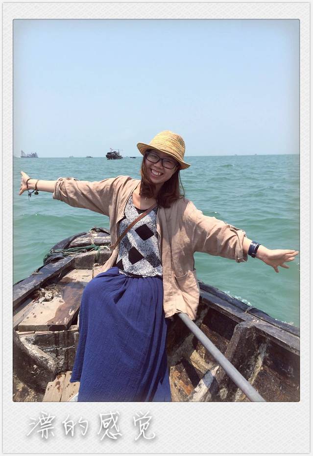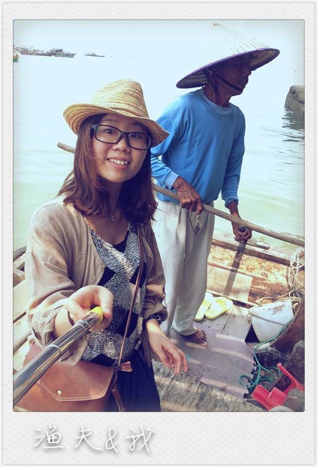 穿过百年老街,来到海边走走。一个渔夫靠岸在看钓鱼,我们走过去拍了几张照片,后来他把船划过来,说带我们去海那边玩玩,只要15块。于是我们上了船,因为海风不大,太阳不猛,我们晃悠晃悠的吹着海风,和船夫有一句没一句的聊着。偶尔经过在海上打捞的人们,我也学着跟他们每一个人打招呼“今天打捞了多少,有几斤”的话,馒头在旁边笑翻了说:你就感觉像回到家一样。打招呼就像那句“你吃饭了吗”一样普通…后来,上了岸,想看看包包有什么可以给他的,找来找去只找到一袋糖果。我跟他说:我去跟岸上的人说,叫他们过来坐你的船。他笑呵呵的回应:好的,一路顺风哈~后来上了岸,馒头说都不认识,不好意思开口额。我听了一下,刚好他们也在讨论出海的机会,我心想:好机会呀。于是就扯开嗓门说:刚才我们两个去游了一圈,船夫人很好,还指着他的方向…后来,再后来,当然好多人一窝蜂的奔了过去~我朝他的方向挥了挥手,别去多珍重哈!