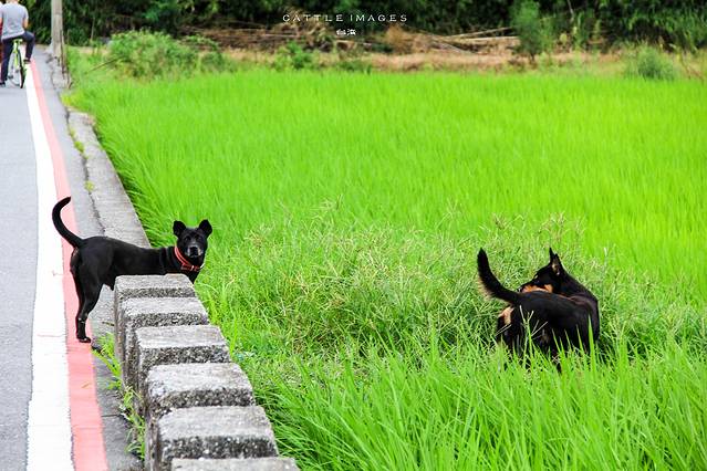 这两只小狗特别有意思,田地里的是一只小公狗,一直装出一副高冷的样子趴在草丛里,带着红色项圈的小母狗一个劲的朝小公狗身上凑,但这个小公狗一脸嫌弃的把她推开,没错,是!一!脸!嫌!弃!的!推!开!
