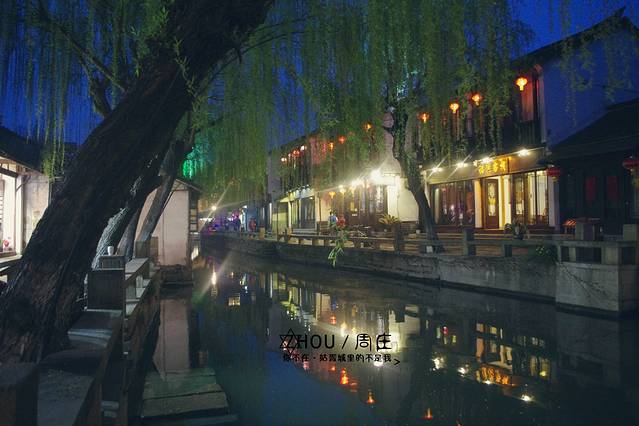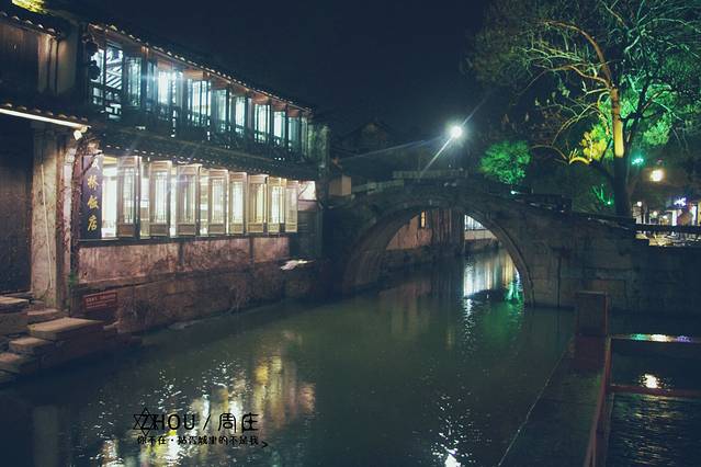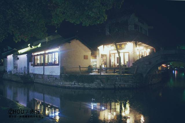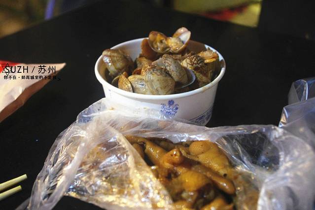 一整天没有吃到好吃的,我们打包了鸭货啤酒猪蹄海螺准备回客栈再战一顿,鸭脖店在景区外面,步行十多分钟的样子,顺带可以游一下周庄的夜景。