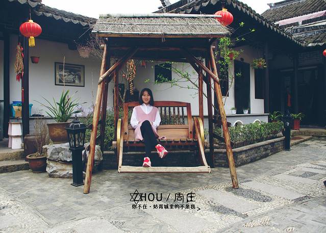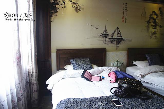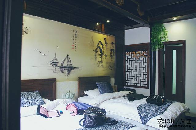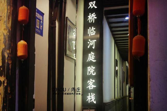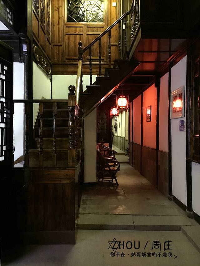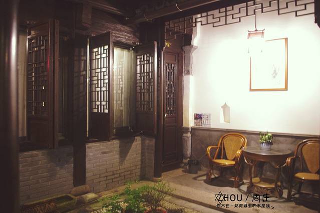周庄住这家客栈,订了纱绫阁,客栈地址在古镇的双桥景点附近,门开的极为低调,只一条长长的走廊,旧式的装潢特别又精致,客栈门左手可以买到来周庄必吃的万三蹄(带了伴手礼回来,可以打真空包装,猪蹄不错肘子一般),右手是间酒吧,晚上有歌手唱歌,觉点打烊。