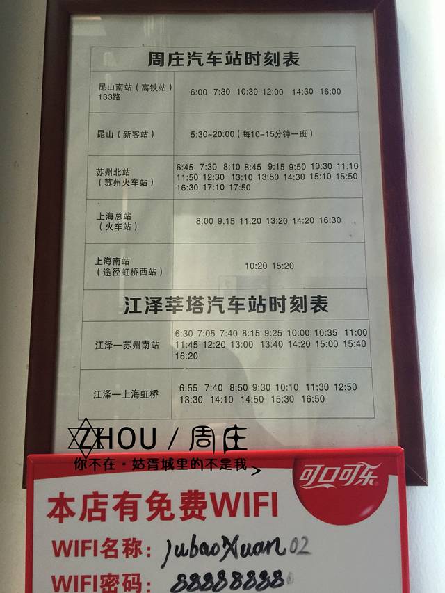 2.见周庄汽车站时刻表(拍于聚宝轩客栈)