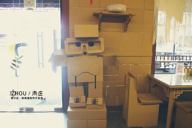 客栈办好入住后,选了纸箱王吃中饭,商店和餐厅是一起的,所有东西都是纸箱做的,售卖的纸质玩意也很有意思,吃了意面、鸡肉饭还有万三蹄套餐,只觉得万三蹄套餐可推,其他一般。