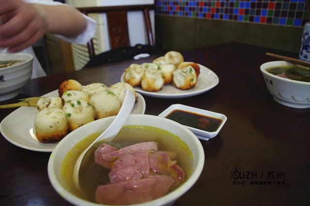 逛完博物馆已经是中午,三人决定吃完苏州有名的哑巴生煎,下午再回来逛拙政园。