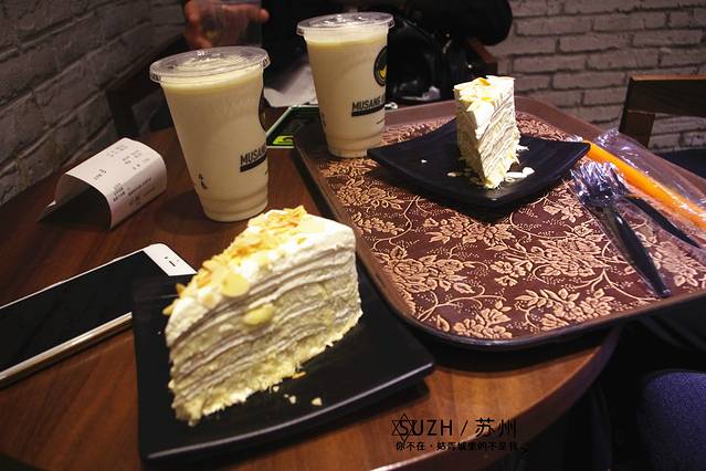 山塘街逛完出来后,梦欧巴离队,娇哥说印象城猫山王的榴莲千层简直是极品,去吃我同意的不能再多,于是话不多说就奔这来了,榴莲的天堂形容这里没有错,榴莲千层+榴莲奶昔太棒,只是可怜我们蓉欧巴,一店的榴莲味近两个小时的熏陶还要忍受外带,那张怕中榴莲毒的脸太赞了。
