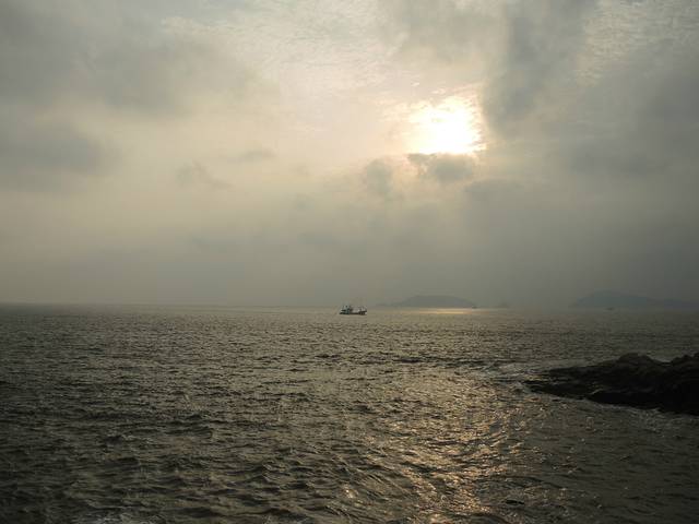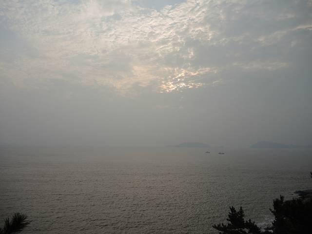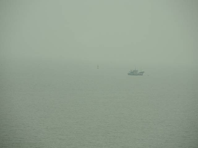 海面上极度辽阔,可惜有点雾气蒙蒙。