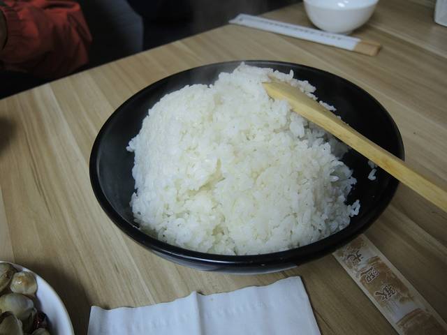 米饭,5元/人。这个有点贵了,米的质量一般。可能是一下午走得累了,先上的一大海碗米饭很快就见了底儿,我们又让老板加了半海碗的米饭,一点都没有浪费。一顿饭下来,4个人120元,在普陀山上也就算相当可以了。