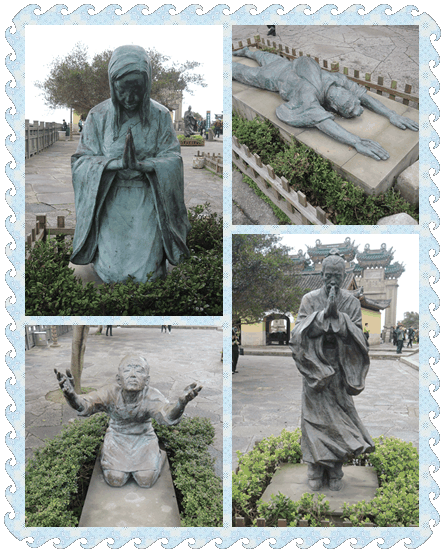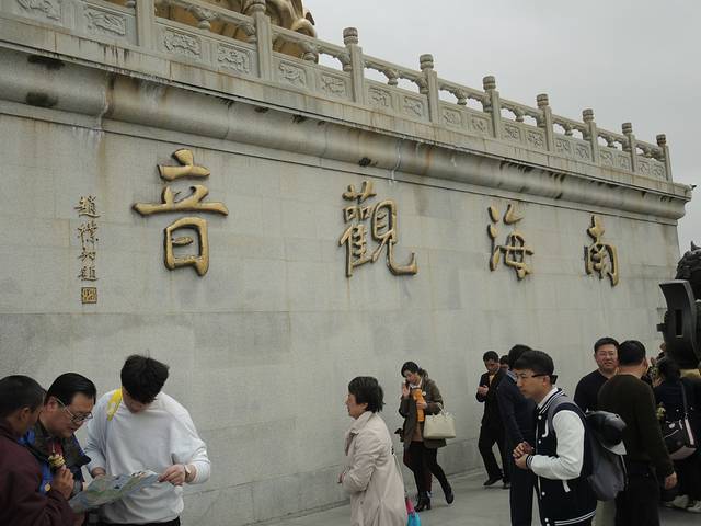 匆匆拍完一组照片, 紫檀快步离开,连跑带颠地追赶队伍去了。小跑了一刻钟左右,大家会师在了紫竹路口。踏着紫竹路的石板直奔南海观音像,买票进门,我们静静地来到了观世音菩萨金身脚下,虔诚地参拜起来。