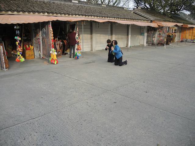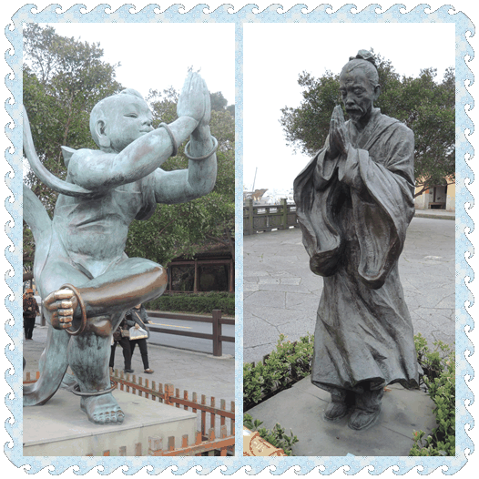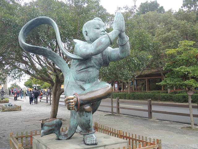 长廊的对面小广场有几尊雕塑:童子拜观音。