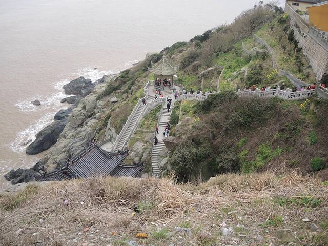 古潮音洞在下面半山腰,要走很多台阶才能到达。