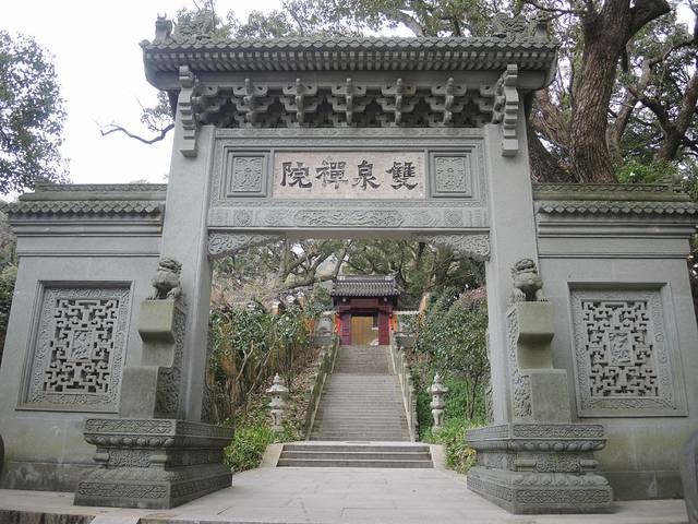 游览完了普陀山东南部的景点之后,时间已近中午,紫檀询问了一下,大家表示肚子并不饥饿,还是抓紧时间去往法雨寺吧,那里也是今天的重头戏呀。怕老人太累了,我们提议坐游览车前往,但岳母首先反对,一定要步行到法雨寺,并抬腿就走。细细观察了一下,此刻唯一阴沉了脸的竟然是年轻最轻的喵喵!按路标显示。从紫竹林到法雨寺距离为2700米,但紫檀觉得不太可信,因为他上午有过南天门那100米距离的教训,可老人家们态度很坚决,年轻人也只好跟上了,只是一再提醒要走得慢一些。果然,路途比表示的要长很多,我们走了一个多小时才到达,依紫檀的感觉,这段路至少有5公里!喵喵累得龇牙咧嘴,满脸的不耐烦,老人家倒是还行,虽然有些疲劳,但心情很好。途中经过了百步沙、悦岭禅院、大乘禅院和双泉禅院,但都没有停留,直奔目的地——法雨寺。