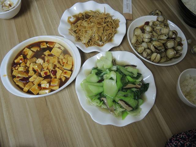 我们的晚餐,依然是四菜一饭,不过今天是两荤两素了。