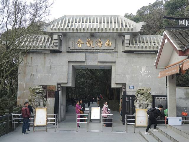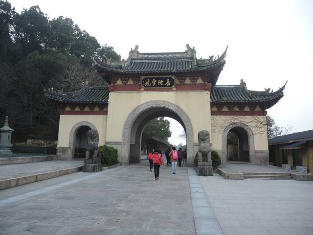 早上穿过普陀山的山门时,发现前面已经有不少游客了。