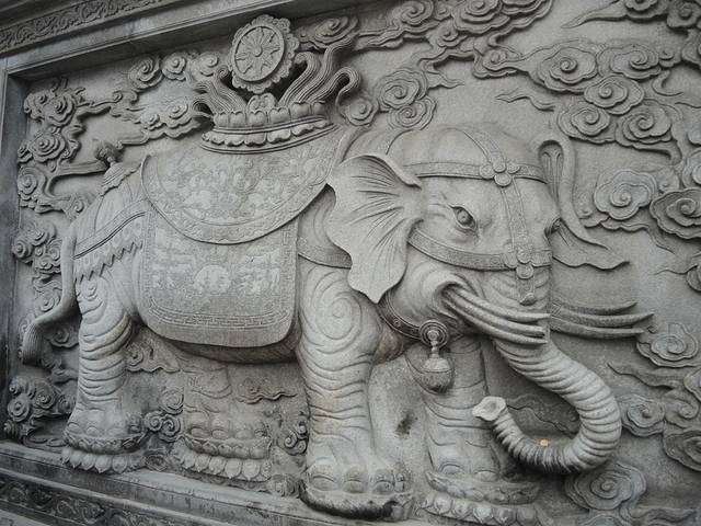 以一头六齿神象为例,便可见雕刻技法之精湛。