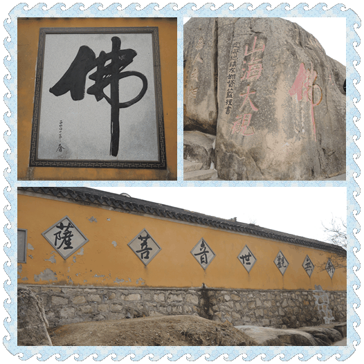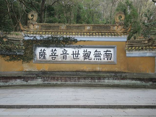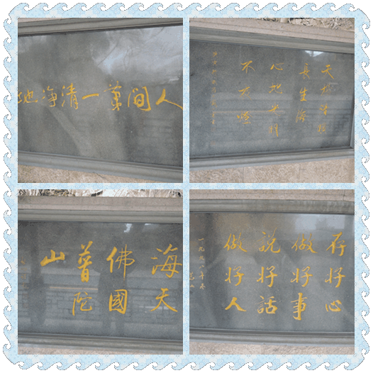 山门里面有一座长廊,墙壁上有很多名人大家赞颂普陀山的碑刻供游人观赏。