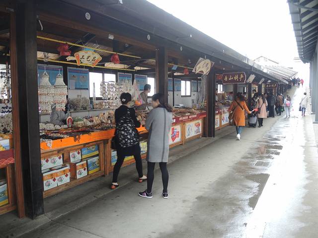 离港通道里布有售货亭,出售舟山特产,想得还是挺周到的,既方便了游客,又增加了收益,浙江人的脑子就是好使呀!