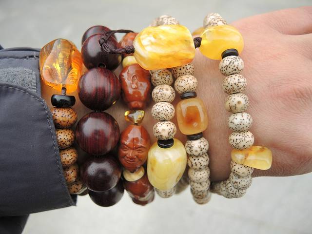 在观音菩萨的金身铜像前,紫檀展示出随身携带的菩提长串和手串,让观世音菩萨用温和慈悲的慧眼为它们开了光。