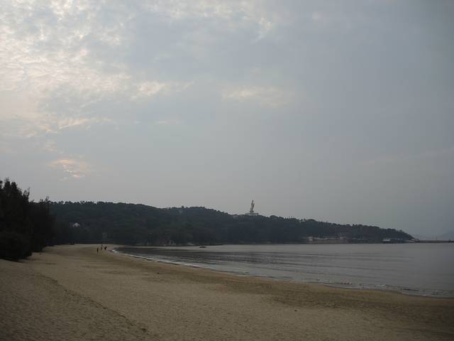 来到海滩上,远远地就能看到屹立在山顶的观世音菩萨的金身塑像。