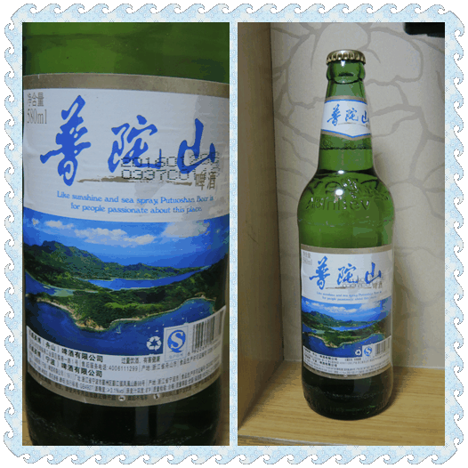 从码头回到客栈,大家都说要先休息半小时再去吃饭。瘫在床上,还没来得及打个盹儿,紫檀突然记起一件事儿:忘了回法雨寺吃素斋了!但双腿实在是不愿意再动弹喽,算了吧,就这样吧,累得一口气儿恨不得能吃下半只羊的食肉动物就别再惦记素斋了 ,以后有机会再说吧!半小时后,我们来到了昨天吃晚饭的餐馆,老板还认识我们,因为是“老主顾”了,主动为我们让了利——按昨天的价格水平收费,感觉有点小温馨 。由于今天的活动量确实太大了,所以点了俩荤菜,酒还是没敢点。晚饭后,紫檀独自出门到小超市买了瓶当地的啤酒——普陀山尝了尝,主要是为了解解乏。