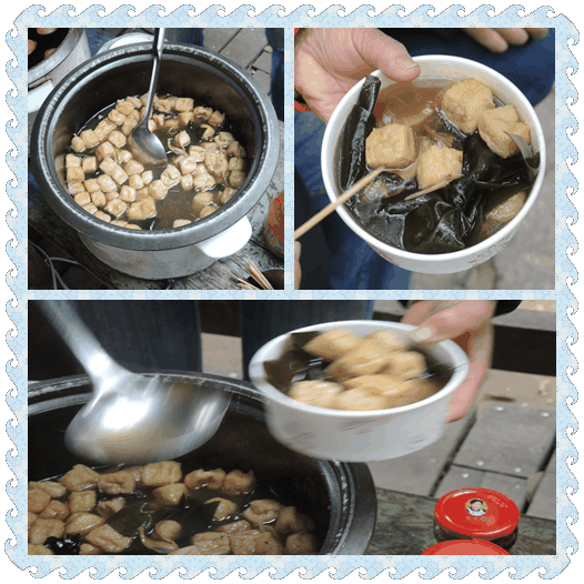 山道上,间隔一段距离就会有一些小售货亭,卖些食品饮料供游人解渴充饥。这里有一款海带煮豆泡,闻起来很诱人,我们来了一碗,5元。量挺足的,味道也挺不错,走得乏累饥饿之际,吃上一碗,还是很有些回味的。 在这里小憩片刻,再拿出些随身携带的点心填填肚子,我们立刻又精力倍增了。