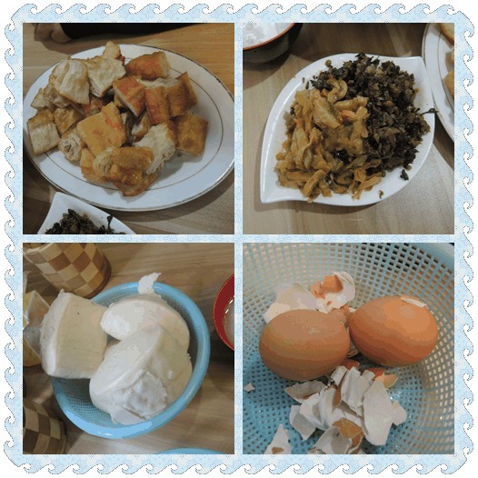 粥汤类的品种也不少,具有地方特色的是年糕汤,皮蛋瘦肉粥是喵喵的挚爱,连着喝了两天呢,味道确实不赖。紫檀选了一碗当地特色的咸菜粥,味道太足了,齁得够呛。