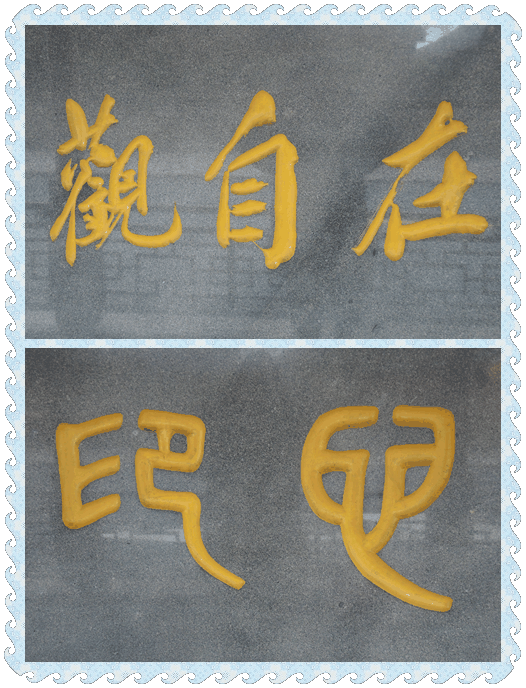 台基上“南海观音”四个大字是卓越的佛教领袖赵朴初先生的墨宝。