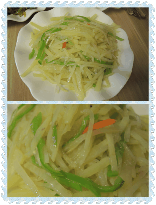 尖椒土豆丝,25元。清爽可口,老人们大爱。缺点是:素菜居然和肉菜一个价,还不如要两盘鱼香肉丝呢,都怪这家饭馆没有宫保鸡丁,要不然换成一个宫保鸡丁,那就完美了!