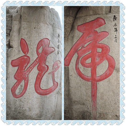 南天门的左右“门框”上大书“龙”、“虎”,笔力雄劲非凡!