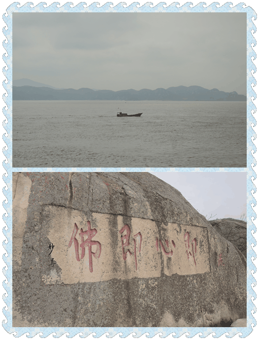 饭桌上闲聊间,老人们说拜菩萨是要有诚心、有恒心的。在普陀山上,这诚心和恒心就体现在步行上。君不见,在通往南海观音铜像金身的石板路上,还有不少信众三步一叩首呢,紫檀在清早更看到了一位年纪不小的大和尚磕着等身长头拜上山岗呢!所以,今天的主要交通工具就是我们的双腿和脚板。听到这个消息,喵喵的小嘴咧得跟吃了三根苦瓜似的,她一定是又想起了当年在峨眉山大战顽猴后的登山之旅了,那一次可是真的把她给累惨了,累得都没有劲儿流眼泪了!那次是普贤菩萨的道场,这一次是观世音菩萨的道场,看来在这样神圣的地方,凡人必须要经历一些磨难,只有努力克服了这些磨难,才能有所精进,才能荡涤身心里的一些凡尘和懈怠,这也许就是来到这些神圣地界的缘由之一吧。紫檀是这样认为的,您说呢?