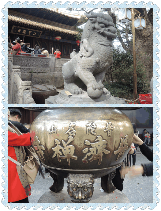 石狮子威然耸立。大殿前的香炉被香客们抚摸得金光熠熠。