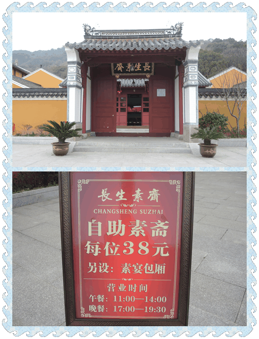 大乘禅院开有一家素菜馆,自助餐每位38元,不算贵。可老两口说还不饿,没有让我们尝到此家素菜。