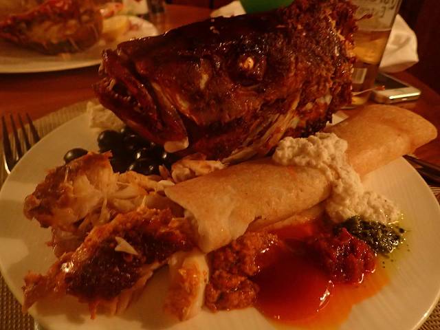 餐厅有一条烤鱼,我去挖脸颊的肉时,小黑说全拿去吧,给了我整头。。。