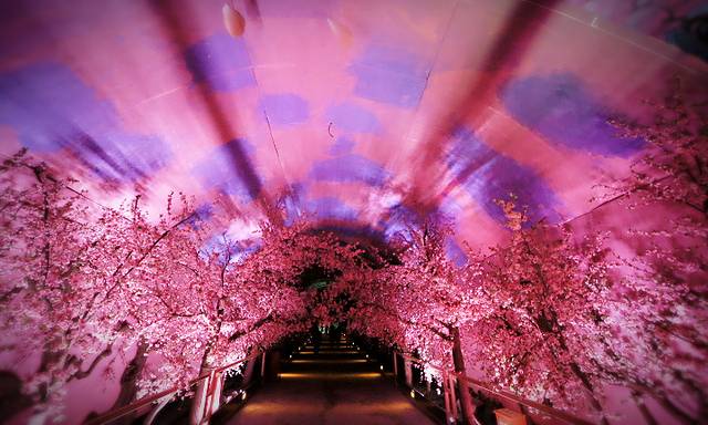 利用光影声电控制的,穿越武陵幻境,两旁是森林动物,再穿过一片美丽的桃花林,此行桃花源之旅才算圆满!