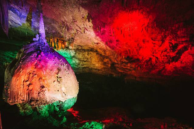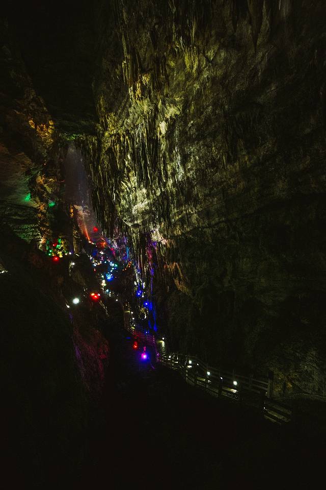 当走到出口,爬上高处在尽头回望整个溶洞时,还会神奇的看到“都市夜景”的景观,一瞬间升出一种穿越古今时光的恍惚感!