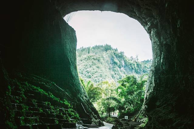 它,位于武陵山脉中的重庆市酉阳土家族苗族自治县。国家5A景区,因为酉阳地处武陵深山,重庆幅员面积最大、森林覆盖率最高、平均海拔最高的区县,最高气温25度,是重庆唯一一个不享受高温补贴的县。酉阳被称作“火炉”重庆名副其实的“凉都”。