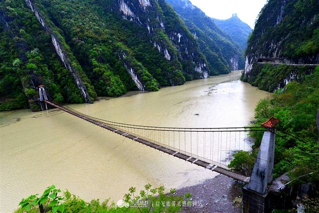 阿蓬江之上,惊艳屹立的长索桥。