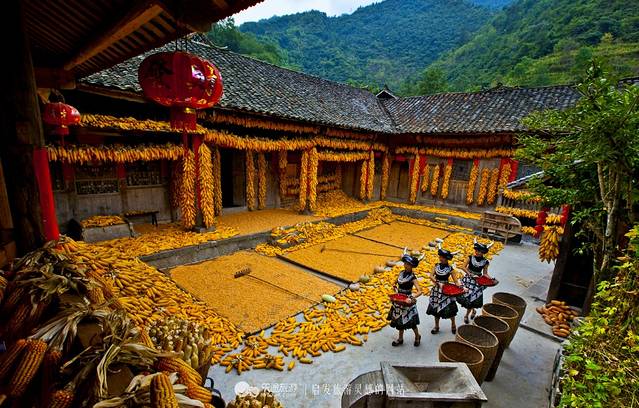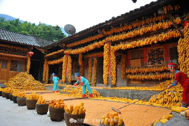 虽然我们去的时候是春天,不过我一定要介绍下秋收时候的石泉苗寨:满屋满谷的玉米呀!金灿灿的幸福感!人们的脸上都绽放着丰收的喜悦!