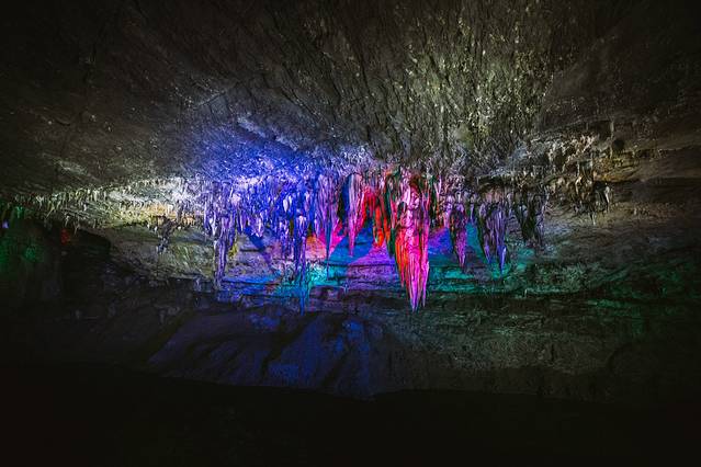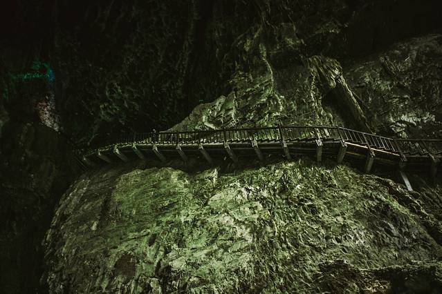 洞内石笋丛生,石幔高挂,石柱巍峨,石帘低垂,石瀑飞流,石坝流叠。行于地下林间,地心惊险奇幽不断,恍若置身神话世界。