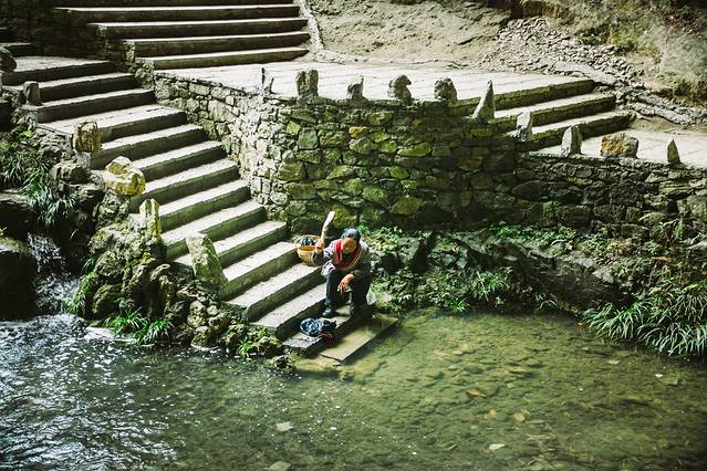 咸阳桥下桃花溪流淌,溪边的阿妈在浣衣。