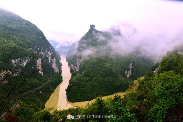岩雄如门,绝壁如画,苍山如黛,江水如蓝。